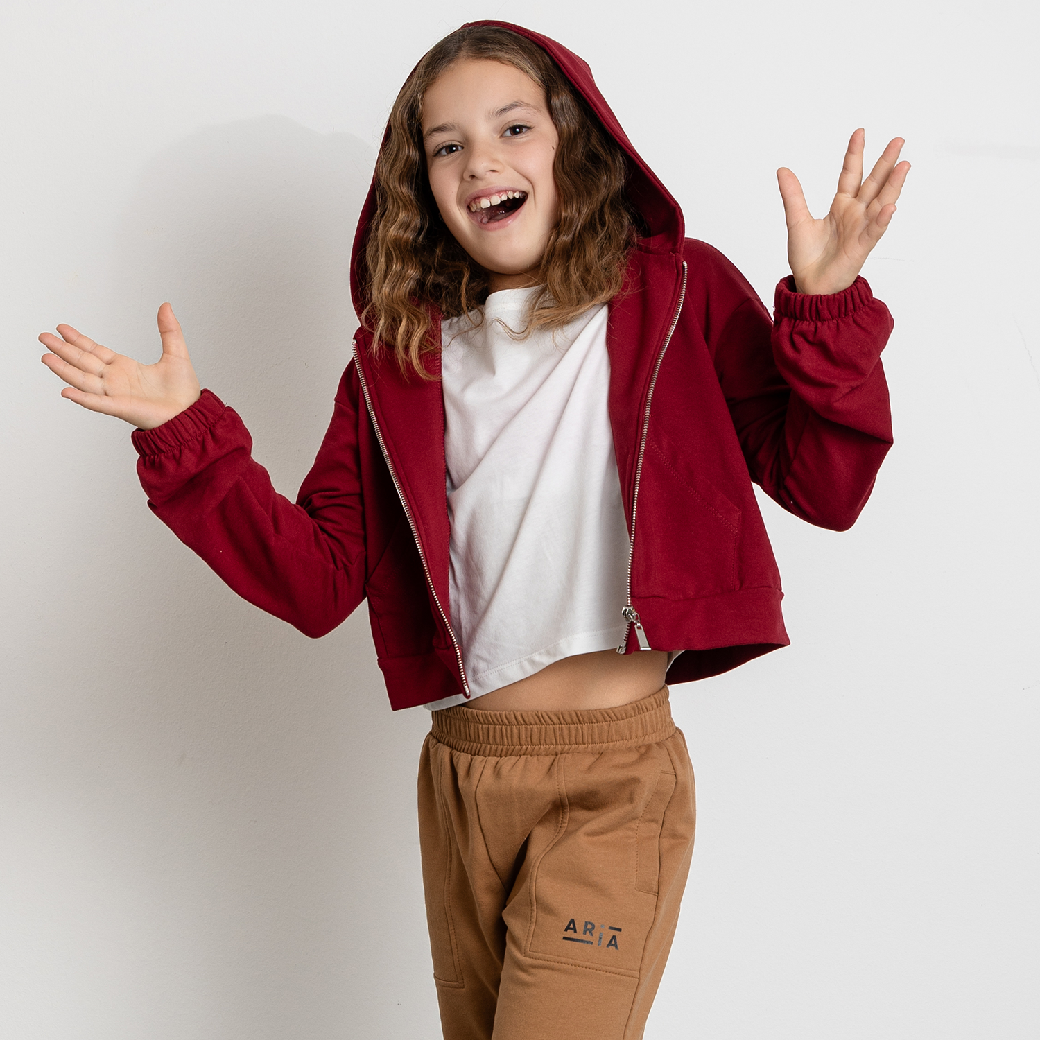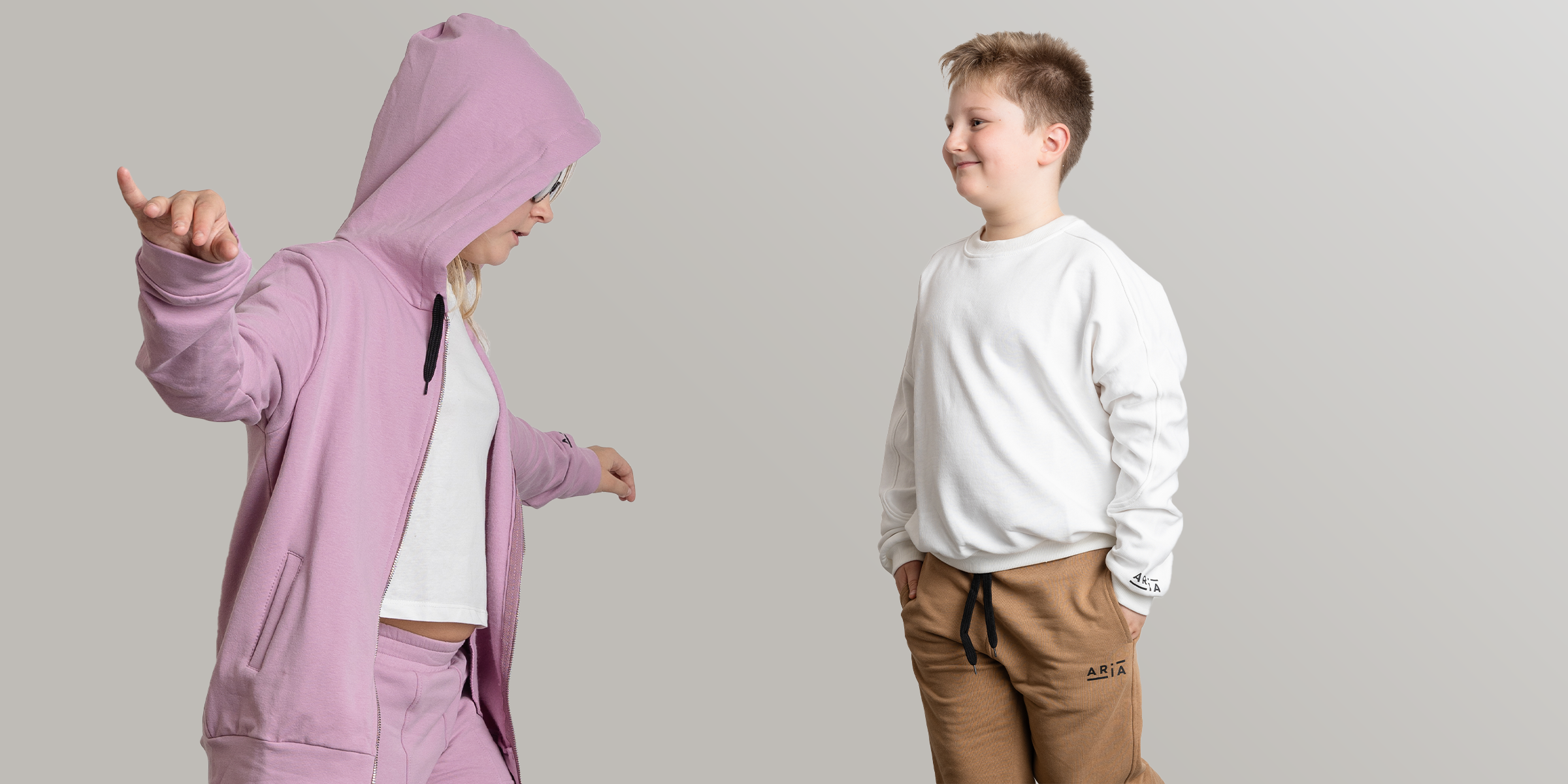 Dopo mesi di lavoro e passione, prende vita Aria, con una collezione fresca e garzata, perfetta per la mezza stagione. Verso la fine dell’anno, la linea si arricchisce con modelli felpati per l’inverno e versioni in cotone 100%, comode e stilose.